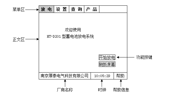 菜單區(qū):放電—放電界面,在參數(shù)設(shè)定完畢后,點(diǎn)擊“開始放電”進(jìn)入放電狀態(tài);